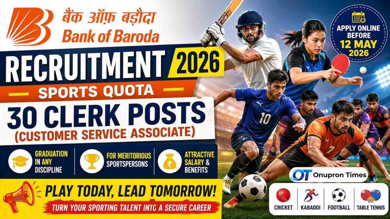 Bank of Baroda Sports Quota Recruitment 2026: The Bank of Baroda has released a notification for the special recruitment drive for meritorious sportspersons in its clerical cadre. This is a rare opportunity for athletes across India to secure a stable banking career while continuing their sporting journey.
