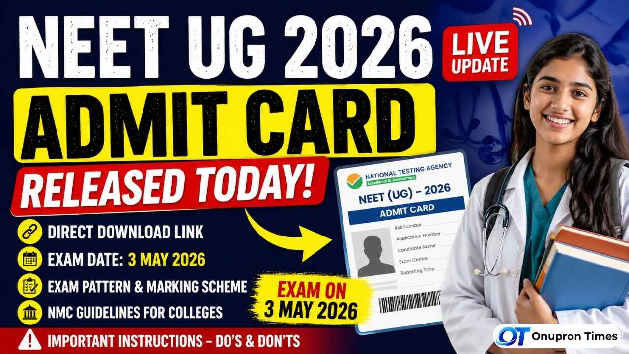 NEET UG 2026 Admit Card Released: The NEET UG 2026 admit card is being released today, April 26, by the National Testing Agency (NTA), just days before the exam scheduled for May 3.