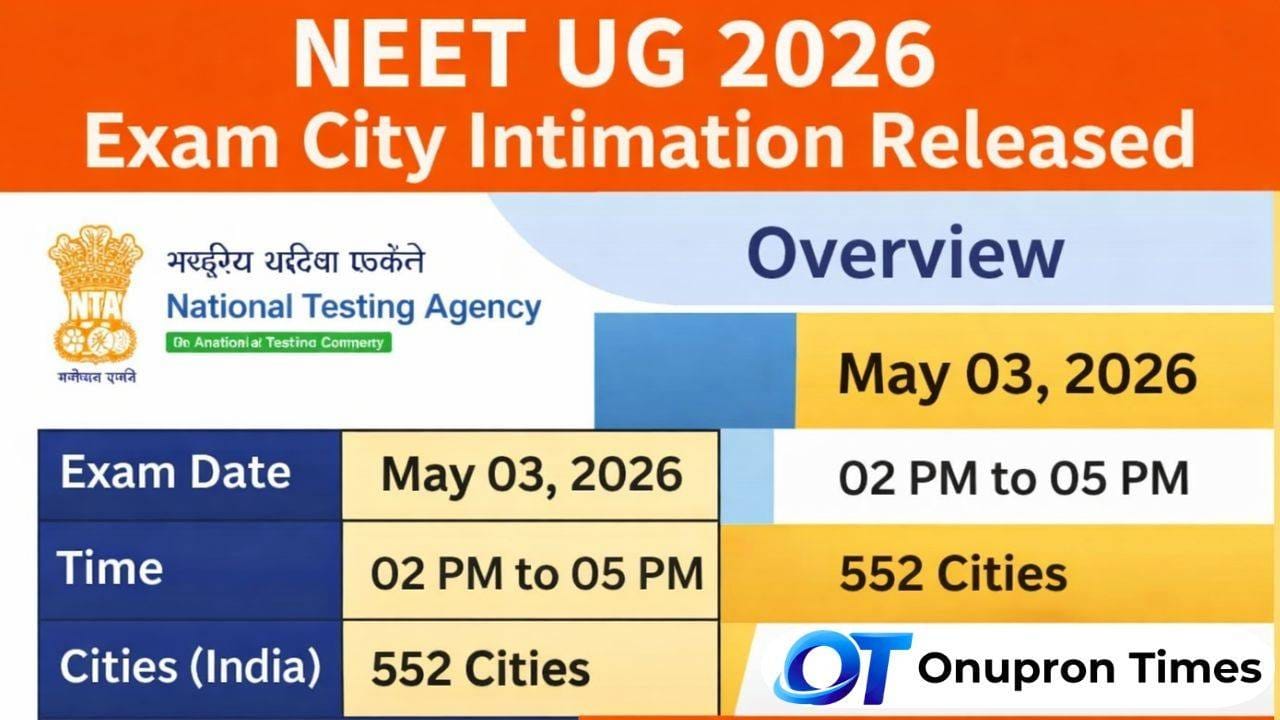 NEET UG 2026 Exam City Slip Released: The National Testing Agency (NTA) has officially released the exam city intimation slip for NEET UG 2026 on 12 April 2026 as per the official website, giving lakhs of NEET UG students an early idea of where their exam centre will be located.