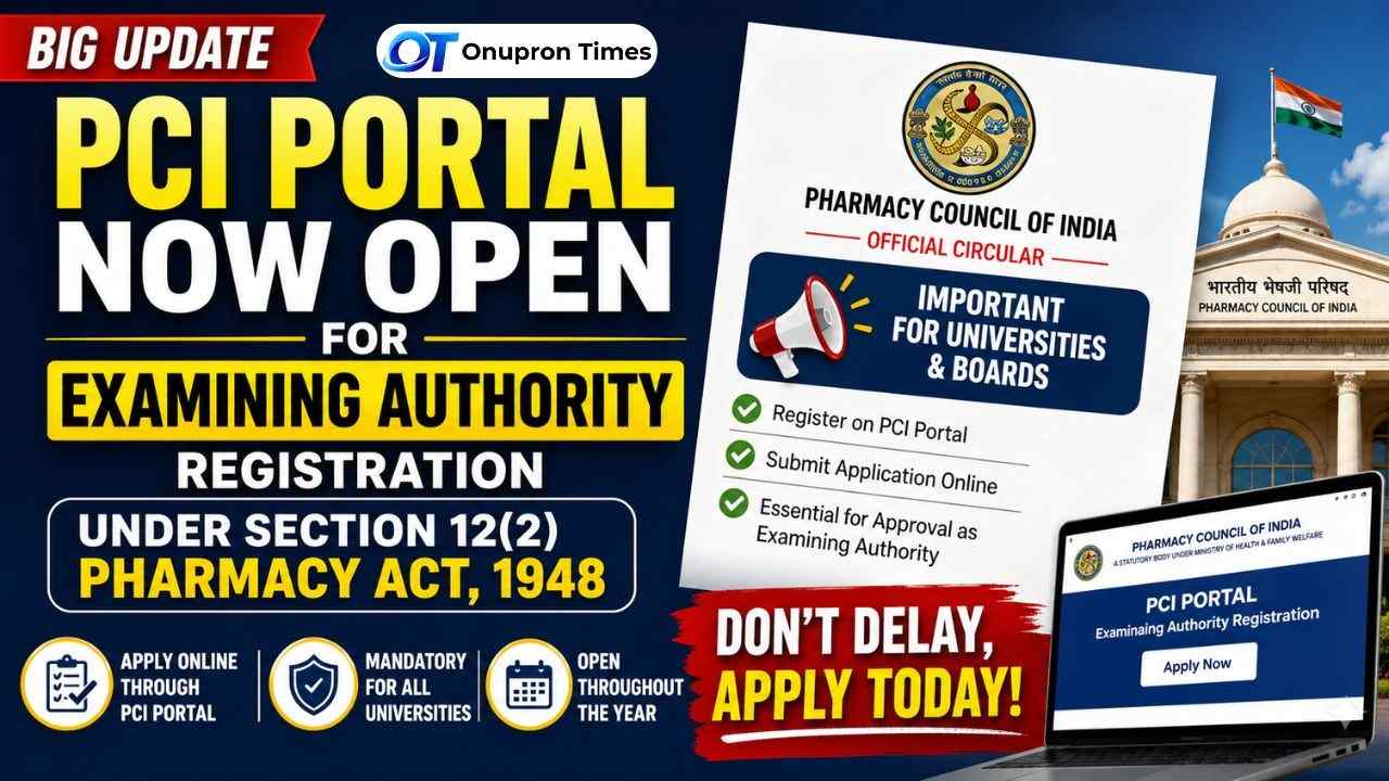 PCI Opens Portal for Examining Authority Registration and Submission Under Pharmacy Act 1948: The Pharmacy Council of India (PCI) has released and opened its online portal for universities and boards to apply for recognition as an Examining Authority under Section 12(2) of the Pharmacy Act, 1948. Registration and Submission of Application Form on the PCI portal for Examining Authority U/s 12(2) of the Pharmacy Act, 1948. This move is part of PCI’s ongoing effort to streamline approvals and ensure uniform standards in pharmacy education across India.