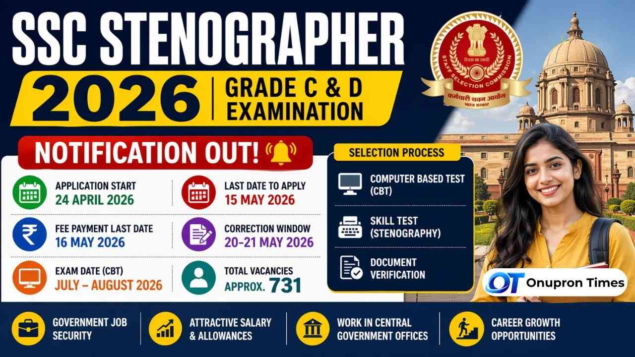 SSC Stenographer 2026 Notification: The Staff Selection Commission (SSC) has officially released the notification on 24 April 2026 for the Stenographer Grade ‘C’ & ‘D’ Examination 2026, opening doors for candidates seeking government jobs in ministries and departments across India. This is a national-level competitive exam conducted annually to recruit skilled stenographers.